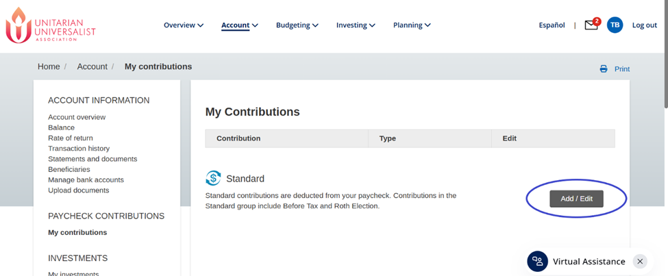 On the next screen "My Contributions," click on Add / Edit: