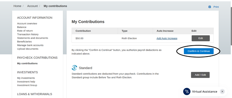 On the next page, review your election and click Confirm & Continue:
